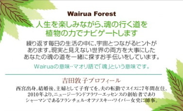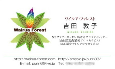 ![]() ![]() ワイルア・フォレストの ニュージーランドの植物を使った フラワーエッセンスで使う植物の葉を 植物の生い茂る力もイメージしています。 ご注文ありがとうございました。 |