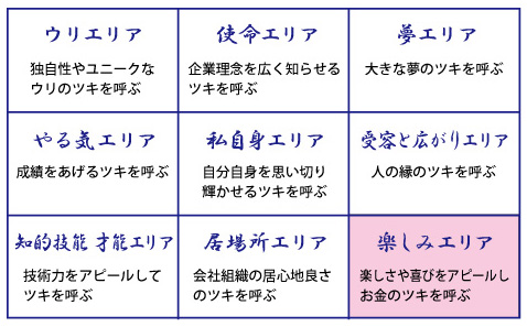 2-8 楽しさや喜びをアピールしお金のツキを呼ぶ 右下:楽しみお金エリア